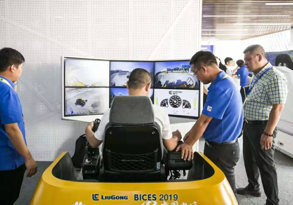At BICES 2019 in Beijing, LiuGong presents its new battery electric vehicles (BEVs) as well as remote controlled intelligent wheel loaders based on 5G technology to the audiences.