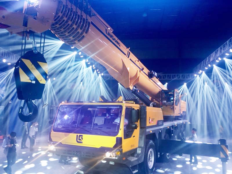 伴随着激情的音乐,闪亮的开合屏轰然洞开,载着高科技的神秘面纱、蕴含安徽柳工所有人心血的柳工C 系家族产品——TC1300C7 起重机震撼亮相。柳工TC1300C7汽车起重机是安徽柳工自主设计、研发并制造的全新产品,它的震撼问世,填补了柳工起重机在百吨级以上产品的空白,为柳工进军更大吨位的产品市场缔造了良好开端,也为中国制造向中国智造奋力前行的道路上增添了浓墨重彩的一笔。