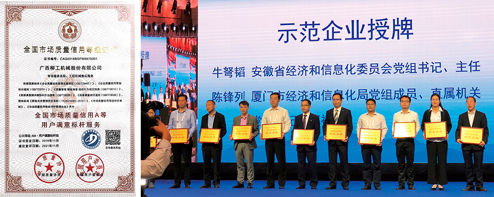 柳工股份公司获“3A级用户满意标杆服务”证书
