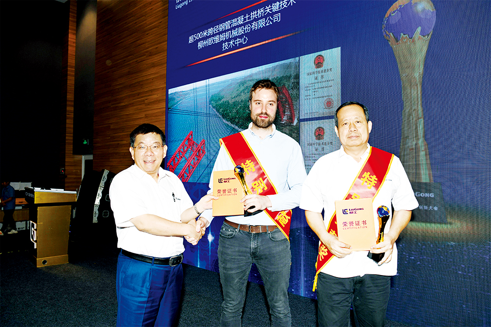 柳工集团党委书记、董事长曾光安给获奖者颁奖