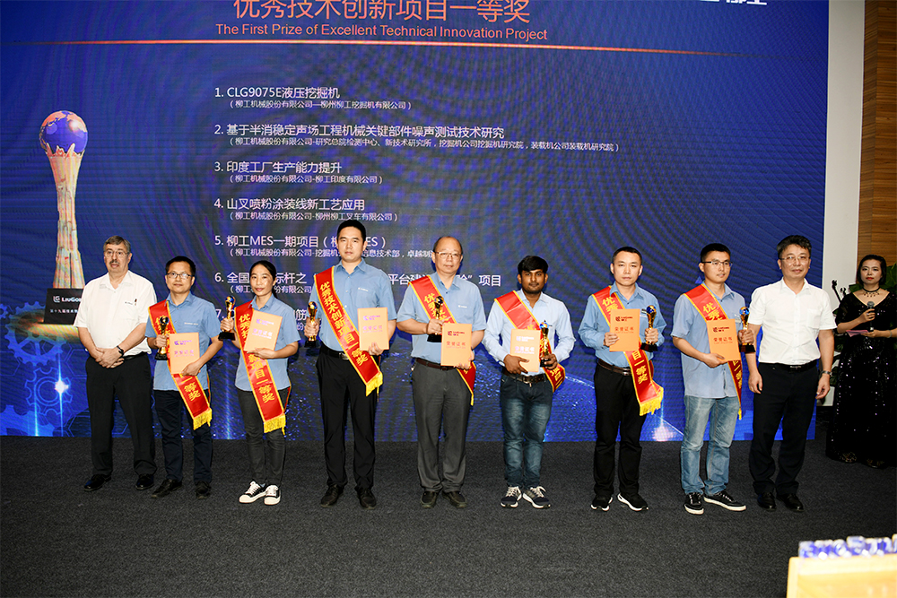 同时,大会还对公司柳工2018年来涌现的优秀技术人员、优秀产品经理和优秀技术创新项目等获奖代表进行了表彰,其中,柳工集团欧维姆公司的超500米跨径钢管混凝土拱桥关键技术项目和股份公司的CLG4180D平地机项目获得特别贡献奖;CLG870H 装载机研发项目获得明星产品奖;多场耦合分析与实验在挖掘机声振热控制中的应用项目获得新技术应用奖;CLG6526E/6530E轮胎压路机产品开发获得项目LDP执行奖。