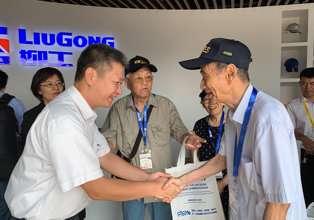 广西柳工机械股份有限公司总裁黄海波在柳工展台接待了来访的20位中国机械部老领导,重点介绍了柳工新能源设备和5G远程遥控设备。