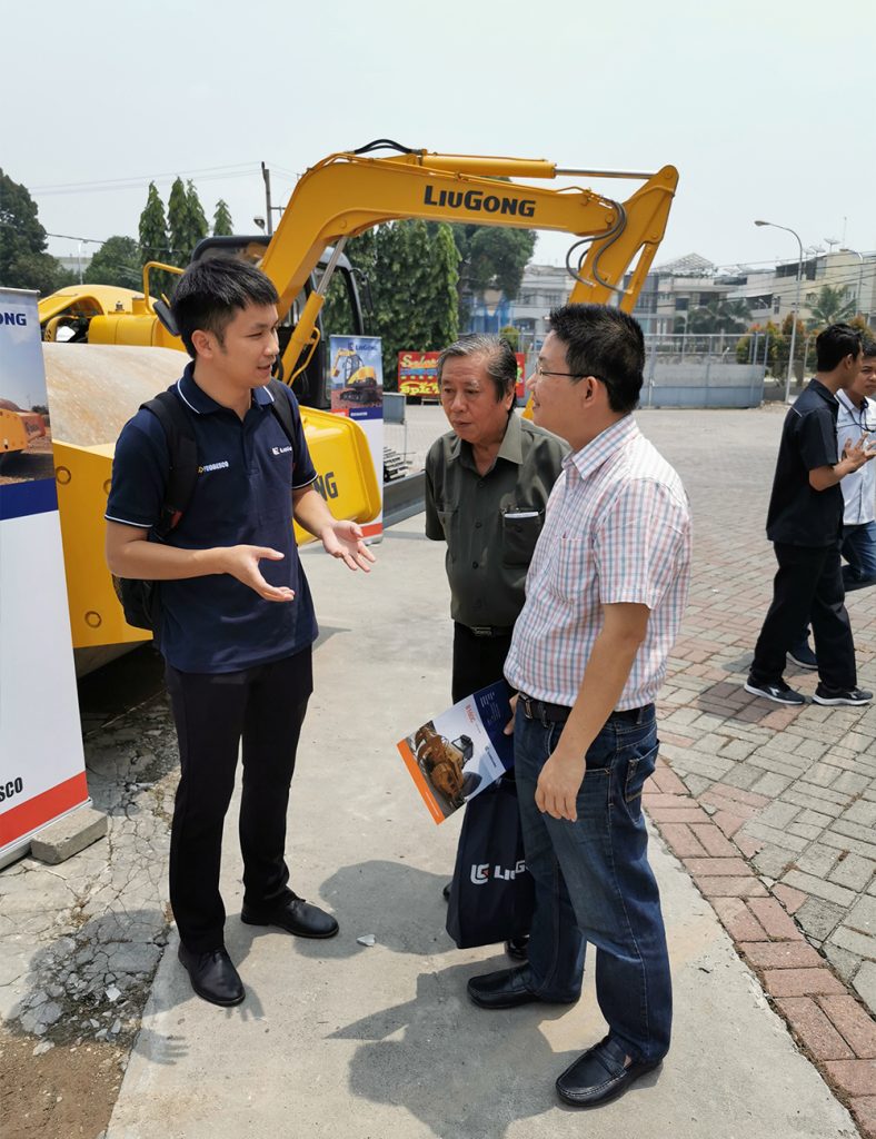 经过双方团队的精心准备,本次展销会设置了柳工企业及产品介绍、有奖问答、整机演示、产品促销等环节:通过柳工企业及产品介绍和有奖问答环节,加深了印尼客户对柳工产品及柳工品牌的认识;而整机演示及产品促销环节又把本次活动推向高潮。现场共计斩获超过 10台订单及其他意向订单,使得本次客户展销会取得了圆满成功。