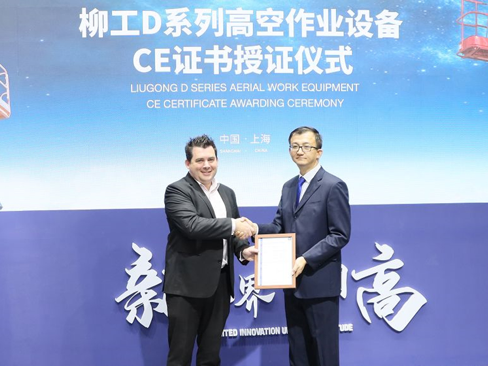 展会现场安徽柳工起重机有限公司营销公司总经理王鹏飞先生与四家公司分别签署了星空平台协议和共计人民币5000万元的授信协议。合作伙伴对柳工产品的认可是支持柳工前进的最大动力,也是柳工发展道路上的永恒目标。在D系列高空作业设备产品发布会上,TUV SUD 大中华区工业服务部总监Mr. Simon Lemin向安徽柳工高空作业设备分公司总经理刘国强颁发CE认证,标示着安徽柳工高空作业设备获得了欧盟公告机构的认可,为柳工高空作业设备进入欧洲市场迈出坚实的一步,柳工也将借此更好地服务全球高空客户。
