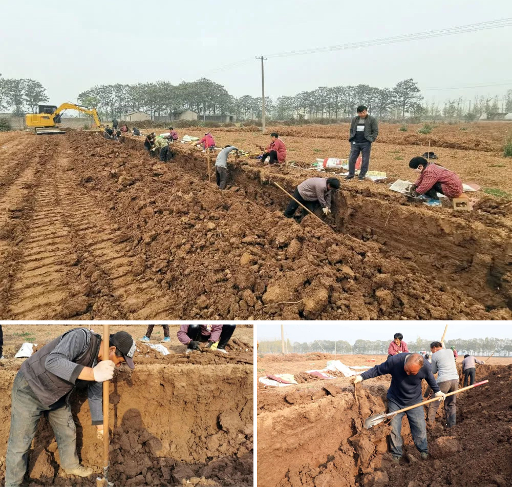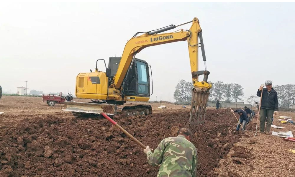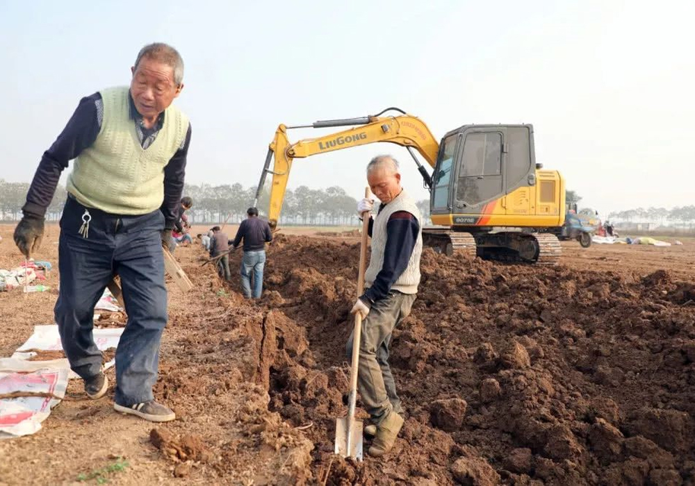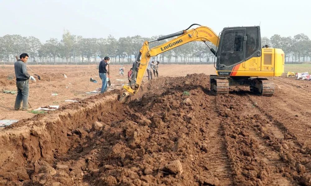 使用挖掘机帮忙挖山药,这既节约了时间,又保证了山药的完整性。