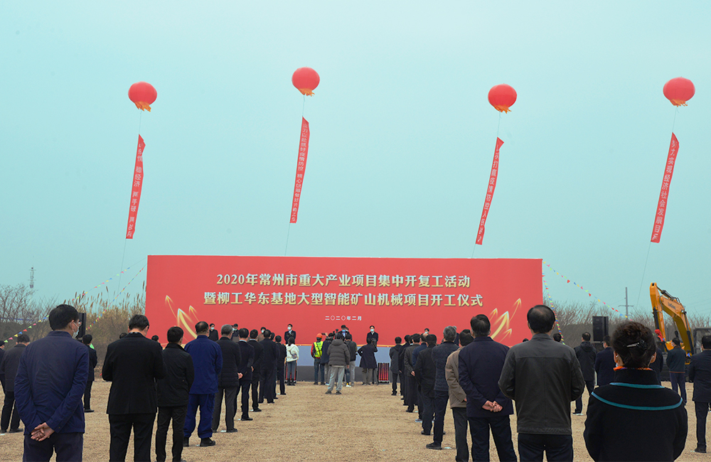 今天,常州市重大产业项目集中开复工活动暨柳工华东基地大型智能矿山机械项目开工仪式在柳工东部研发制造基地举行。常州市市委书记齐家滨宣布开复工,代市长陈金虎发表讲话,常州市、区领导,以及广西柳工机械股份有限公司董事副总裁,柳州柳工挖掘机有限公司董事长,中国工程机械协会挖掘机分会会长黄敏等领导参加活动。