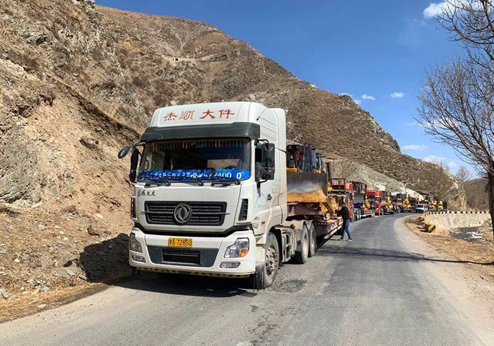 2020年3月4日,运载着12台柳工160C推土机的6台大型拖车一字排开,依次从青海秦煜柳工机械工程有限公司出发,前往湟源县大华镇红土湾村高标准农田改造项目,助力当地抓农时,保春耕。