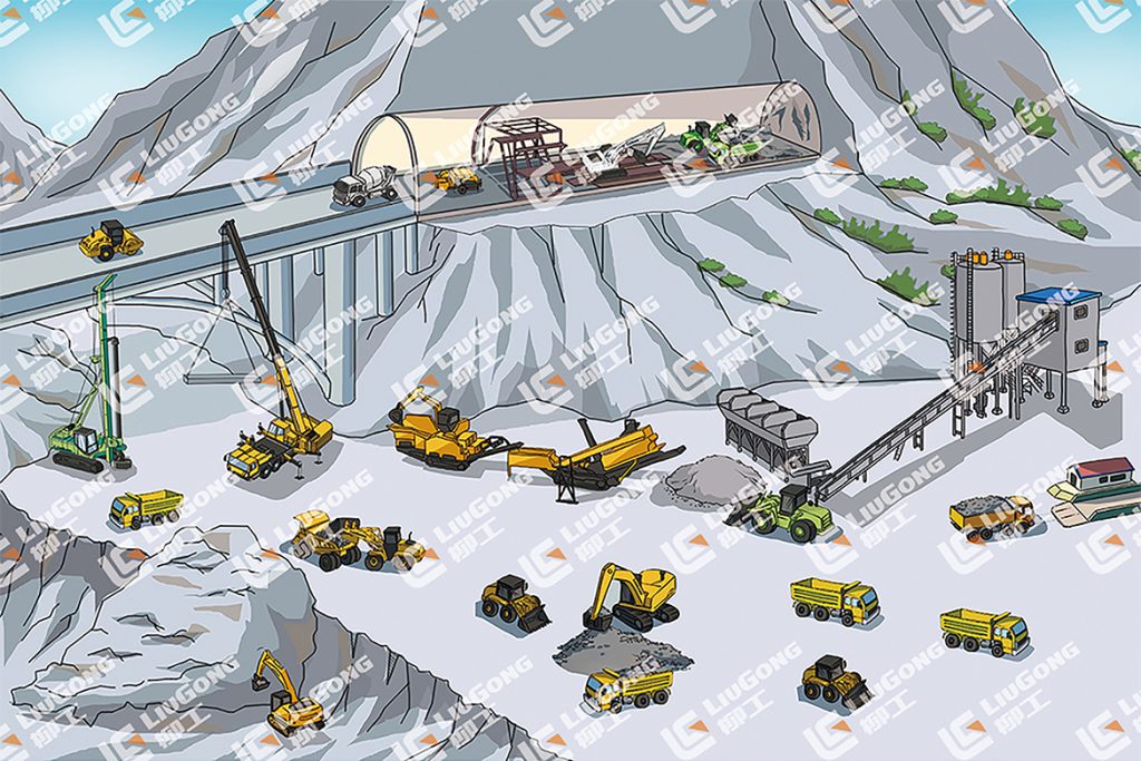 同时柳工还有应用于高原隧道的出渣车、搅拌车,以及适用于桥梁基础施工工况的旋挖钻、起重机、空压机、OVM欧维姆设备等。