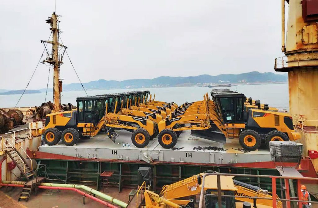 1月28日,搭载柳工百余台装载机、挖掘机、平地机的货船在防城港码头蓄势待发……