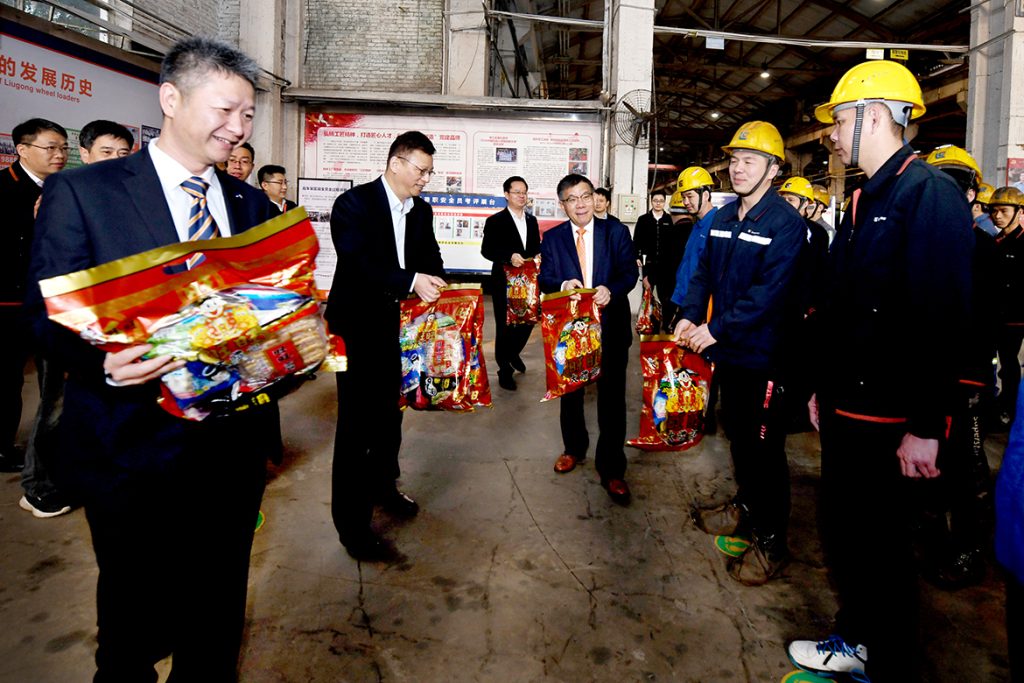 当日上午,柳州市委书记吴炜、市委副书记张壮率队莅临柳工开展春节期间复工慰问。他们来到柳工装载机装配工厂,与现场员工一一握手,并与大家亲切合影。了解到柳工装载机在过去一年中取得了优异的成绩,吴炜十分高兴,临行前,他鼓励大家:“鼓足干劲,再创新辉煌!”