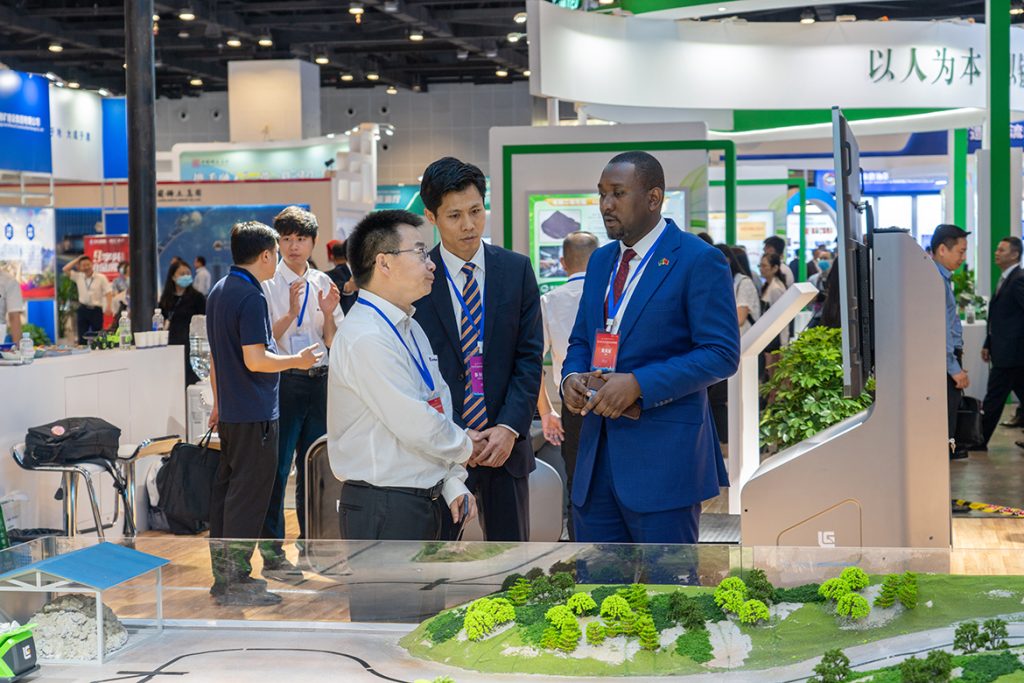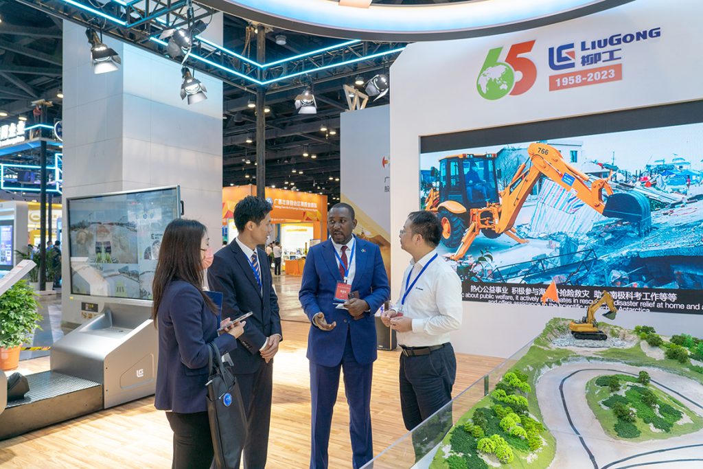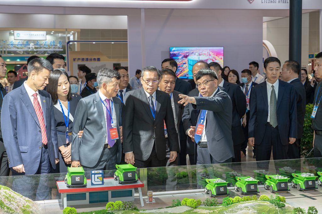 开幕式后,中外嘉宾共同参观了柳工展台,现场了解柳工智慧矿山系统模拟演示、柳工5G智能遥控装载机等智能、绿色矿山解决方案。