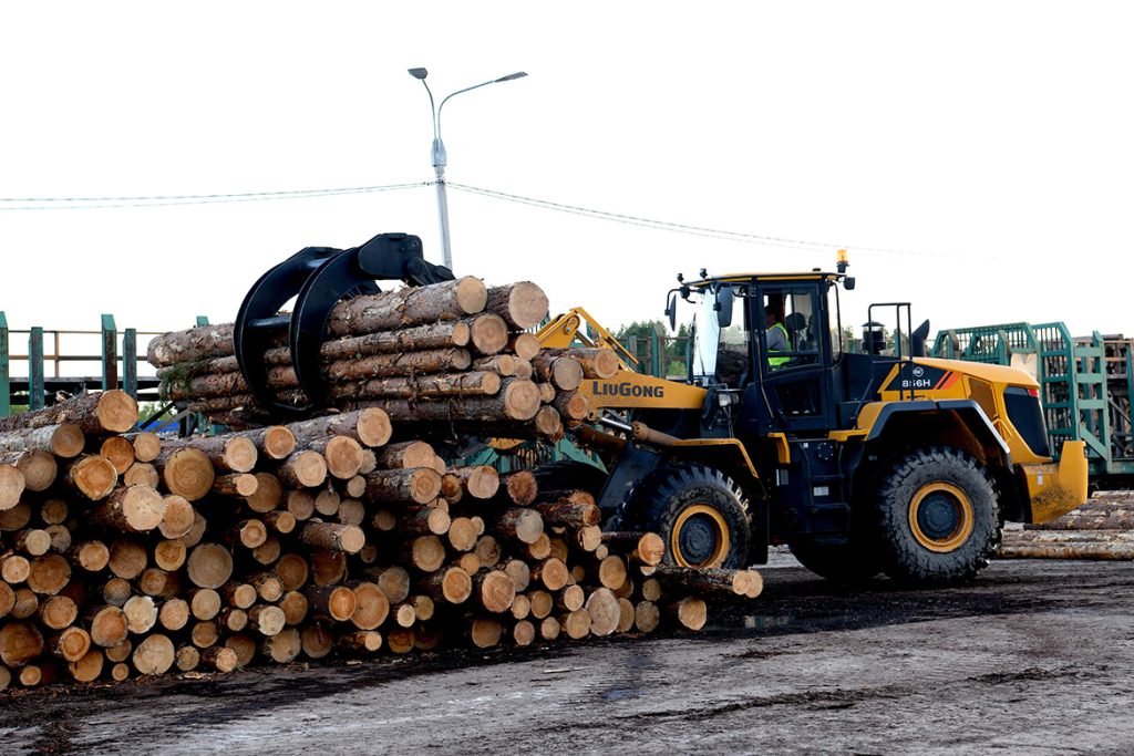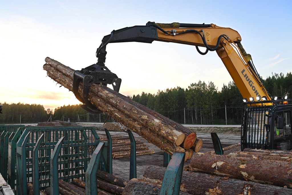 进入普列谢茨克,仿佛来到了森林王国,穿过一片又一片笔直的树林,我们终于看到正在进行木材转运和装车作业的柳工装载机、挖掘机。只见配置抱叉属具的柳工856HMAX装载机将原木堆放成整齐的“小山”,柳工922E挖掘机娴熟地将7-8根原木抓起,装入旁边专门运送木材的火车车厢,只需几分钟就能装满一车厢。