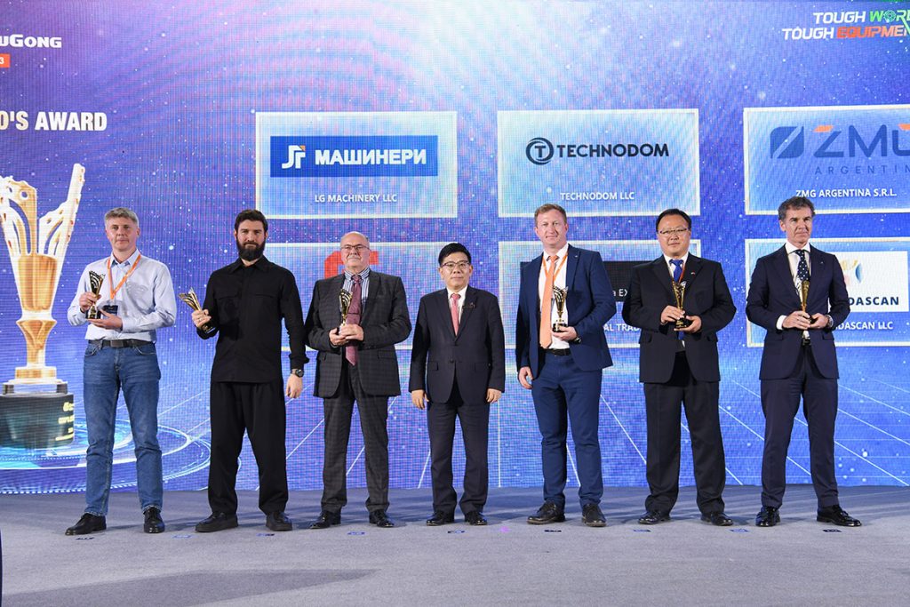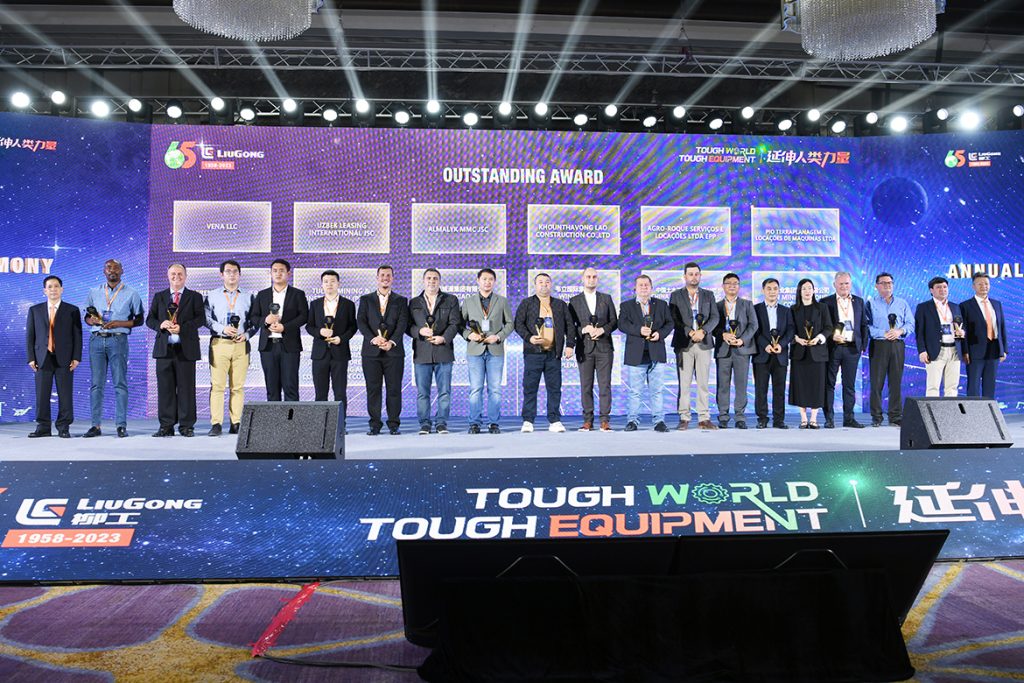 会上表彰了一批为柳工海外发展做出卓越贡献的经销商、客户等,并颁发CEO奖、卓越合作成就奖、十年合作成就奖等荣誉。