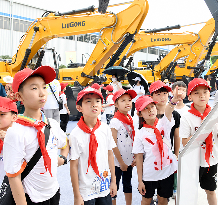 “六一”儿童节,柳工国际工业园迎来了一批特殊的客人——精灵可爱的萌娃们。孩子们走进梦想中的机械王国,近距离感受大国重器的魅力。
