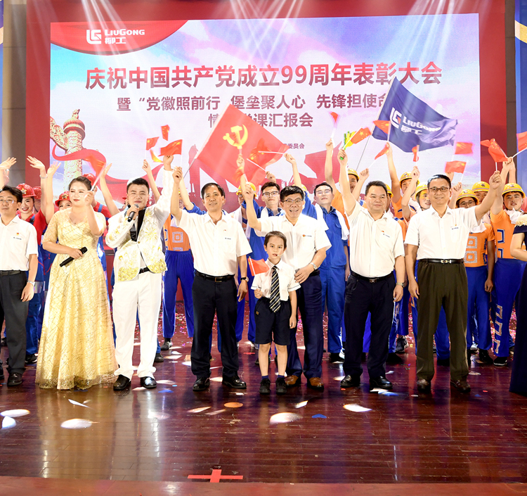 6月30日晚,广西柳工集团有限公司召开庆祝中国共产党成立99周年表彰大会暨“党徽照前行 堡垒聚人心先锋担使命”情景党课汇报会。