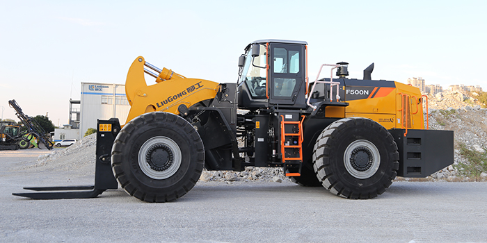 - F500N石材叉装机是柳工专为石材工况研发的40-50吨级叉装机,也是柳工目前最大吨位的石材叉装机;